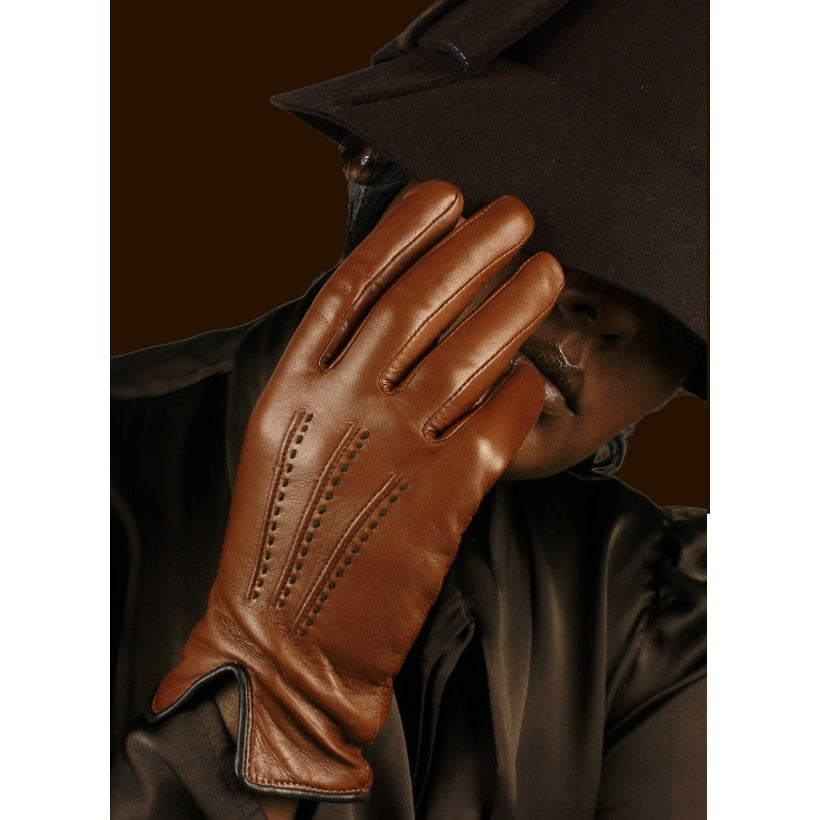 Un gant classique, pensé pour les femmes qui aiment les accessoires sobres, raffinés et bien faits. Le modèle Audrey en cuir couleur cognac avec détails marron foncé séduit par ses lignes épurées, son confort exceptionnel et ses finitions artisanales soignées.
