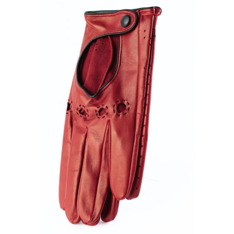 Les gants Fangio en rouge intense et noir réinterprètent le design classique avec une touche contemporaine pleine de personnalité.