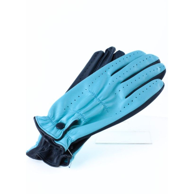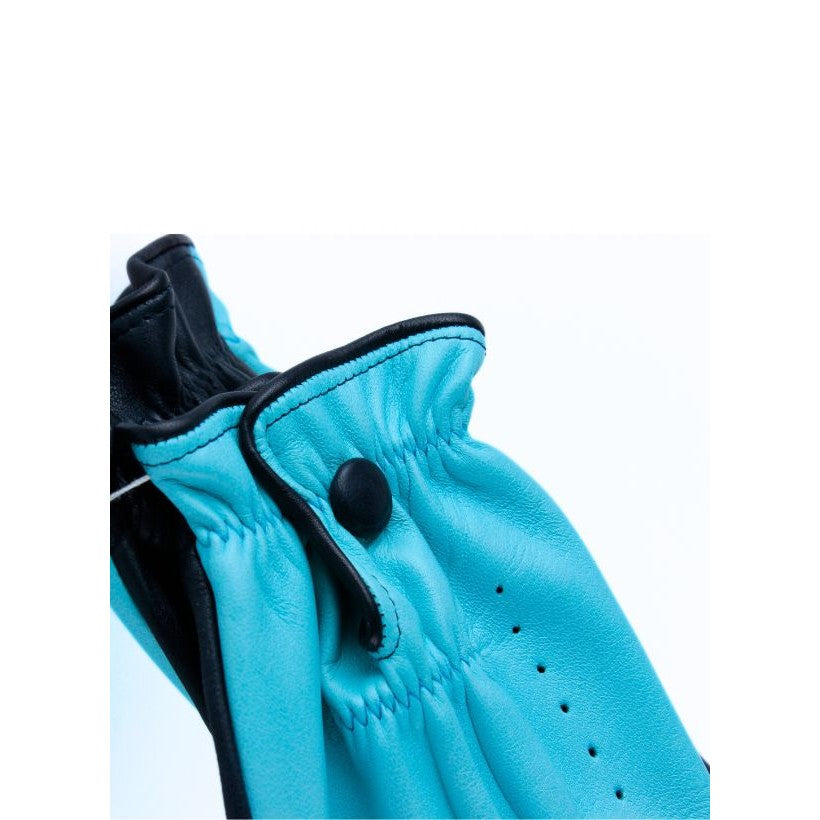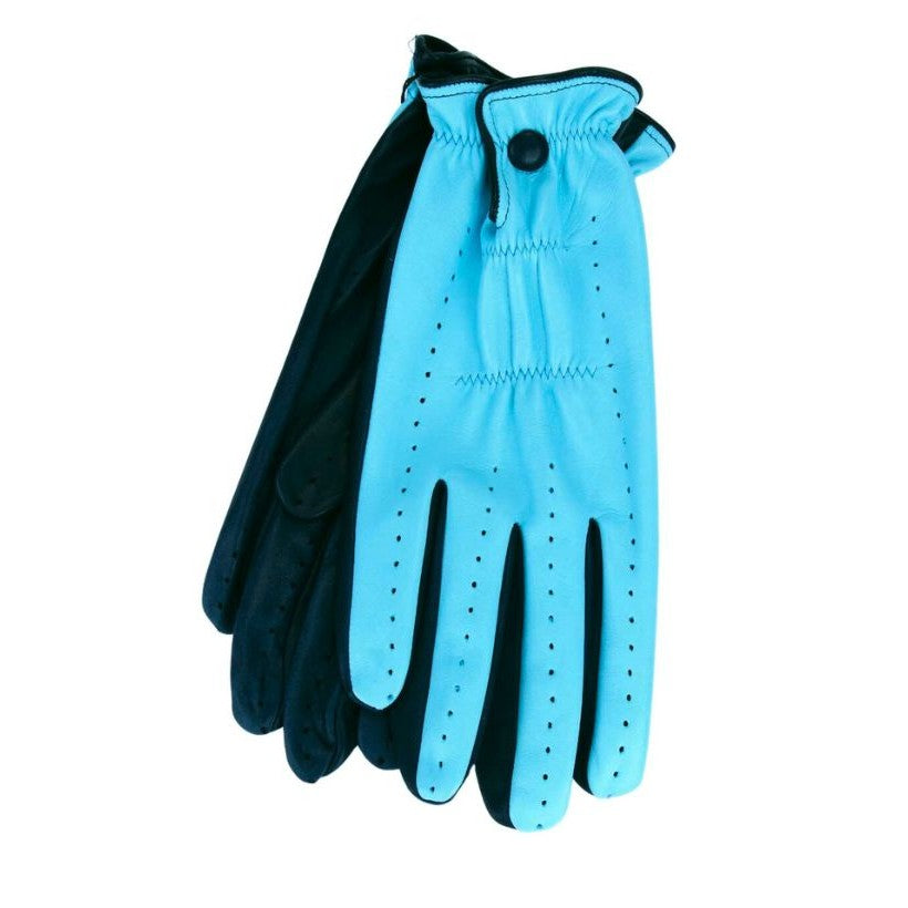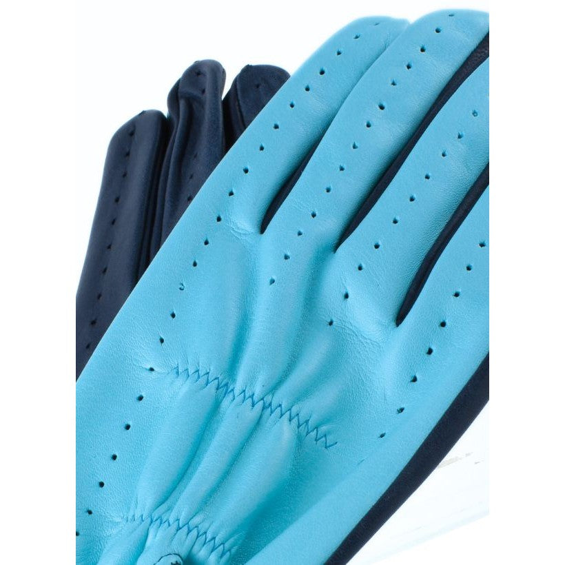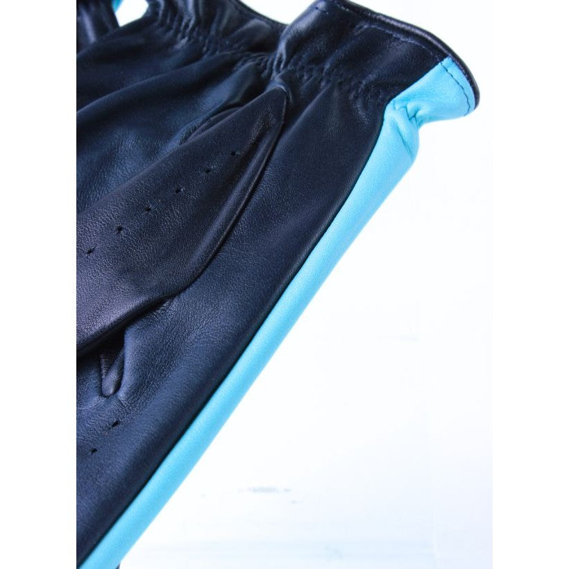 Le modèle Jim G, confectionné en cuir d’agneau non doublé, marie un bleu ciel lumineux et un bleu marine profond pour créer un gant à la fois moderne et intemporel.