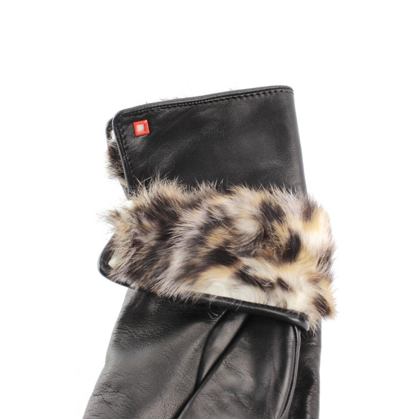 Des gants en cuir sophistiqués qui allient design raffiné et confort exceptionnel. Le modèle 3PL Lapin se distingue par un poignet plus long, qui enveloppe le poignet pour offrir une meilleure protection contre le froid et peut être retourné pour révéler la somptueuse fourrure tachetée. Le contraste entre le cuir d’agneau noir profond et la fourrure au caractère affirmé crée un accessoire qui ne passe pas inaperçu. Parfaits pour celles qui aiment les détails luxueux et un style recherché.