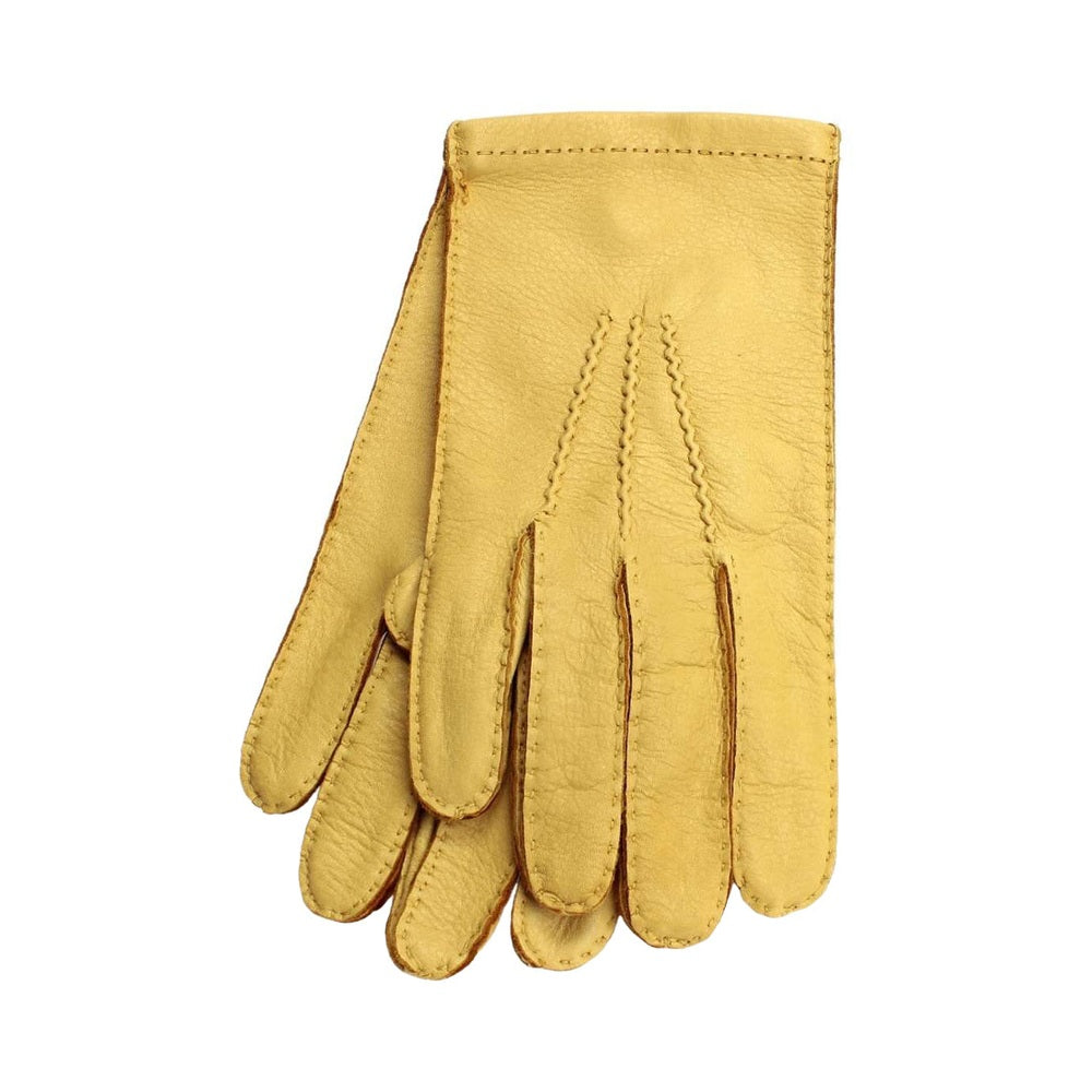 Guanto premium in pelle di cervo, morbido e resistente, foderato in pura seta per un comfort superiore. Elegante nella variante gialla, unisce artigianalità e stile senza compromessi.